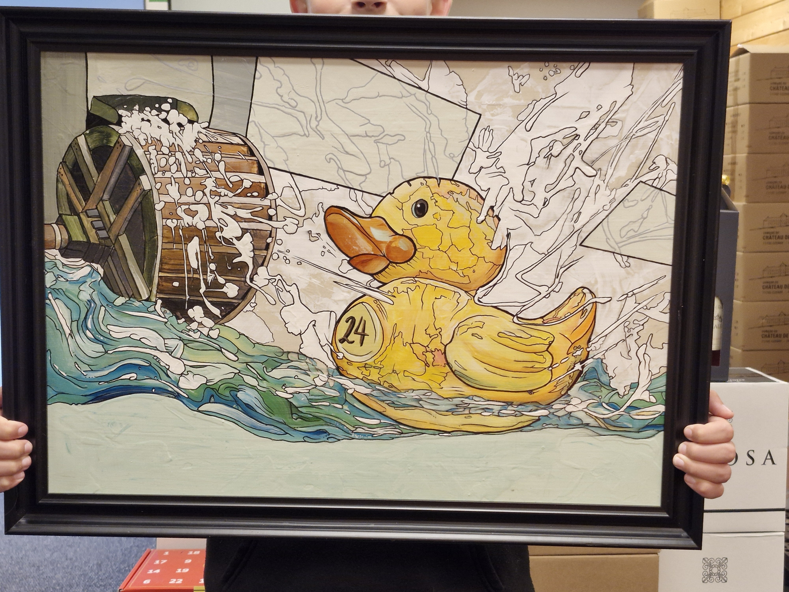 Kunstneren fortæller derefter om sine overvejelser og intentioner med valget af motivet til årets vinetiket. Børkop Vinen er en fremragende gave til værtsparret – en god vin til en attraktiv pris, der samtidig er med til at markedsføre vores lokale gode handelsliv.